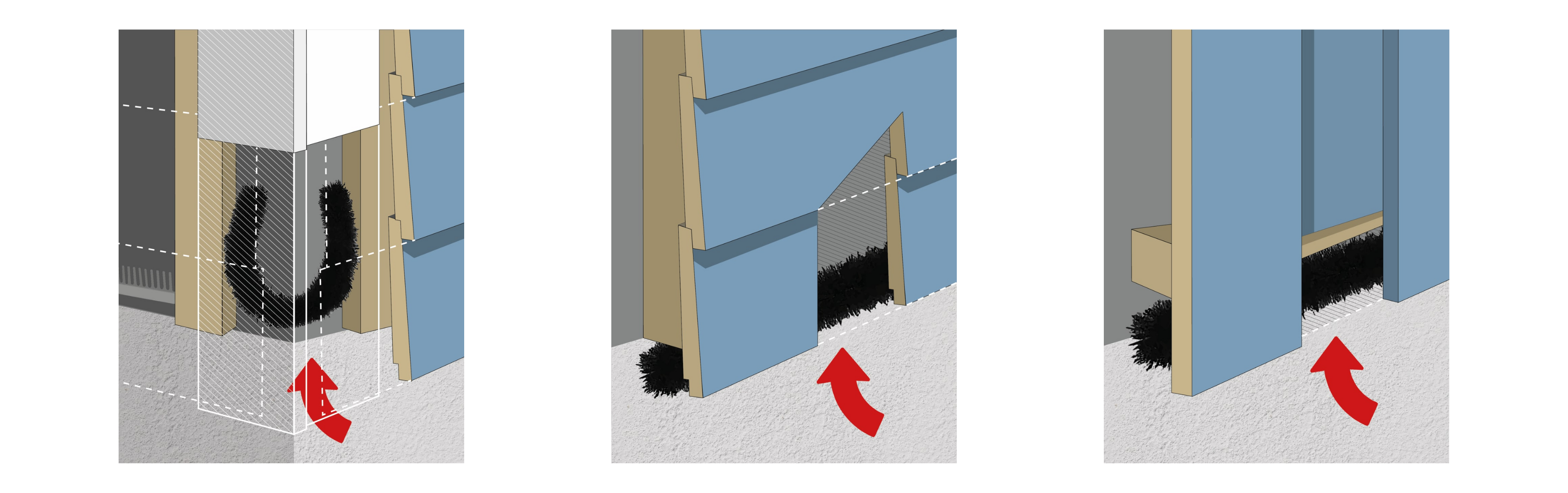 Monter børsten enkelt under kledning eller hjørnekasser for å hindre inntrekk av gnagere. Det anbefales å ha minst 10 cm mellom kledning og bakkeplan. Unngå å bruke børstene i horisontale flater som sprekker og rundt rørgjennomføringer.