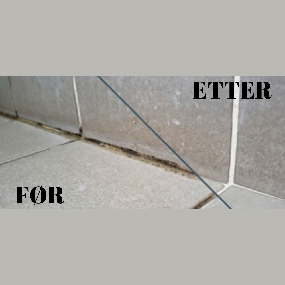 - Etter rengjøring kan det fortsatt være misfarginger dypt i fugen. Fjern dette med ProtoxFugeRen gel.