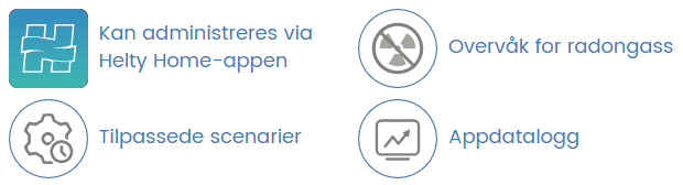 I kombinasjon med Helty sine Miniventilasjoner (balansert ventilasjon) kan du ikke bare måle radonnivåer i sanntid, men også tilpasse ventilasjonen automatisk basert på definerte grenseverdier for radon.